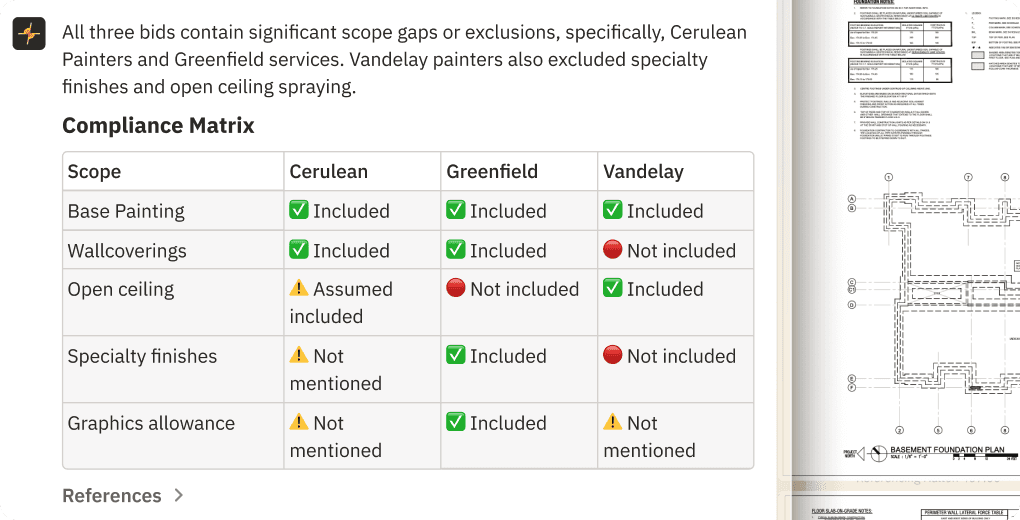 Accurate search & answers across all your drawings and specs.